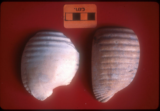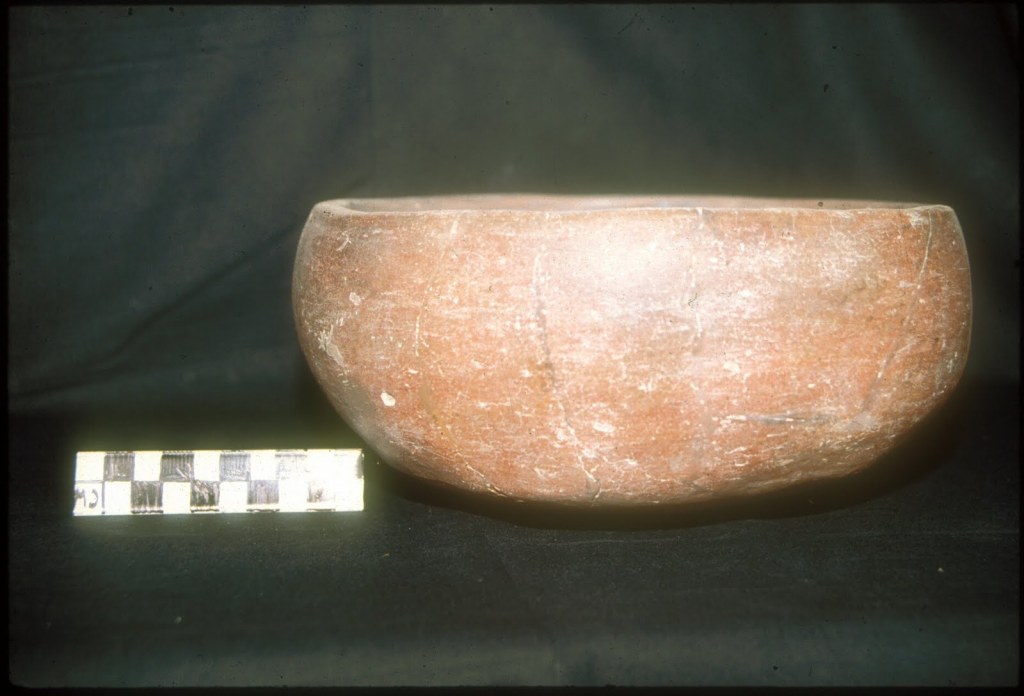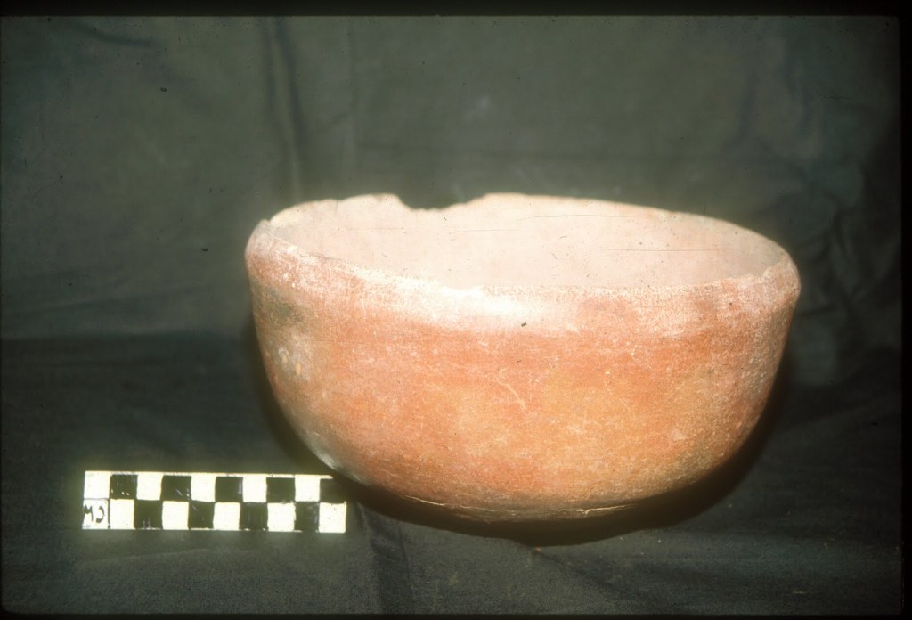 Una cerámica bien hecha, cuyo inventario lo constituyen tres formas básicas: un cuenco, una olla chata de labios doblados y una vasija de cuello alto e inciso para líquidos las que desde sus inicios presentan el uso de engobe rojo, y que llamamos Valdivia fase I (Hill 1972/1974; Norton 1982).