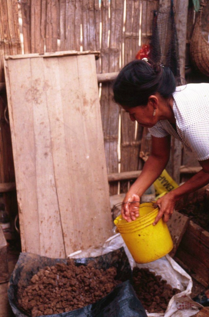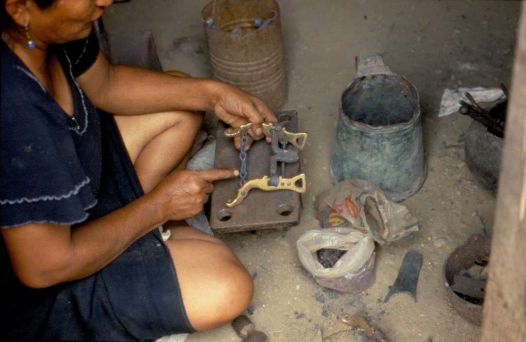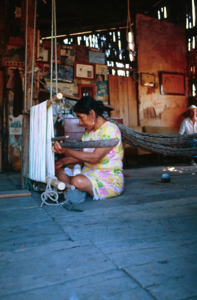 ALVAREZ, Silvia. “Artesanías y tradiciones étnicas en la península de Santa Elena” en: Revista del CIDAP Nº25 pp. 45-119 Abril 1987, Cuenca, Ecuador.Las artesanas y sus artesanías contribuyen a imprimir identidad étnica al Pueblo Ancestral Comunero. Las artesanías representan el vínculo con su historia como Antigua Comunidad Indígena desde “tiempos inmemoriales”. Contribuyen a mantener la memoria y a impedir la desarticulación del universo territorial de referencia: unen familias a través de las actuales fronteras Comunales, y estimulan el intercambio regional. El mercado de intercambio y circulación de artesanías, y el de sus conocimientos asociados, se mantuvo relacionado con los Antiguos Territorios étnicos a lo largo de la costa del Pacifico (por lo menos desde Manabí al Norte de Perú). Este intercambio todavía otorga a los grupos participantes sentido de pertenencia y autoestima frente a los extraños (algodón chiao que viene por ejemplo desde Bajadas de Chanduy y llega a Tugaduaja.