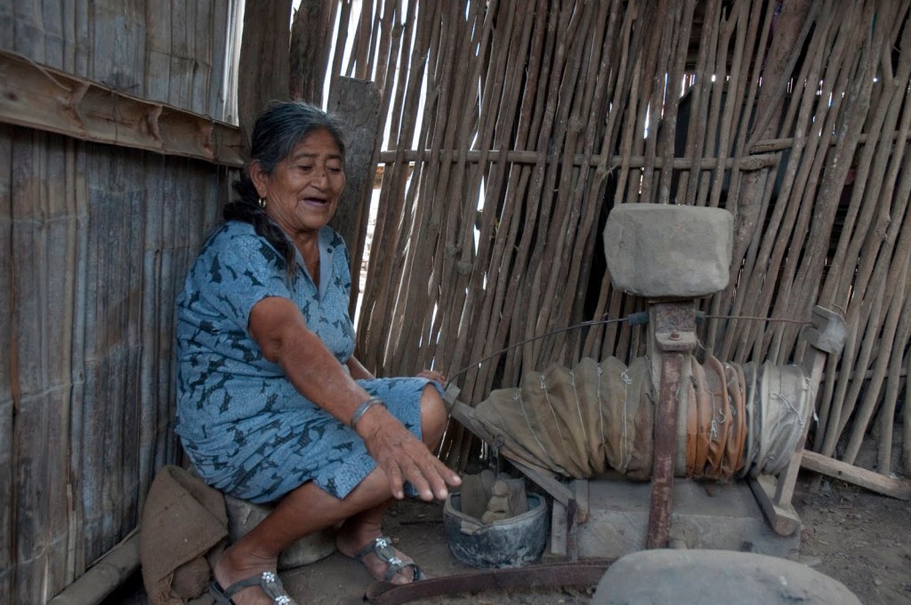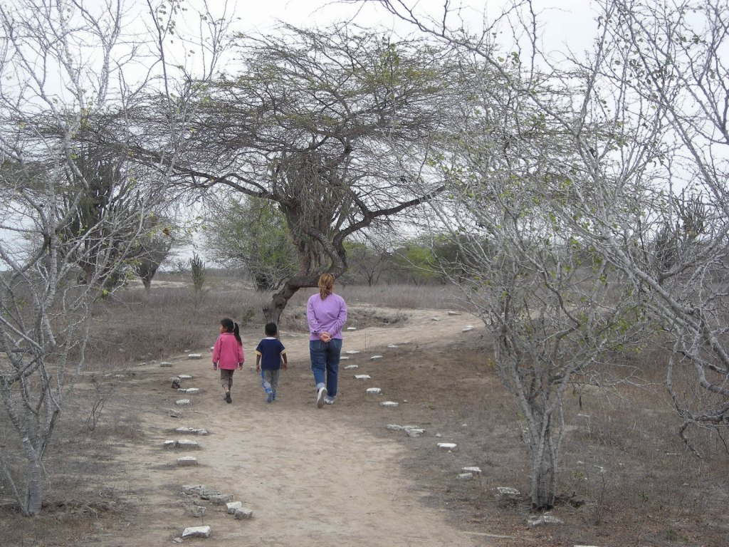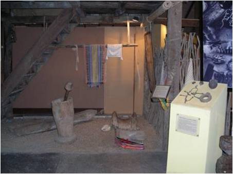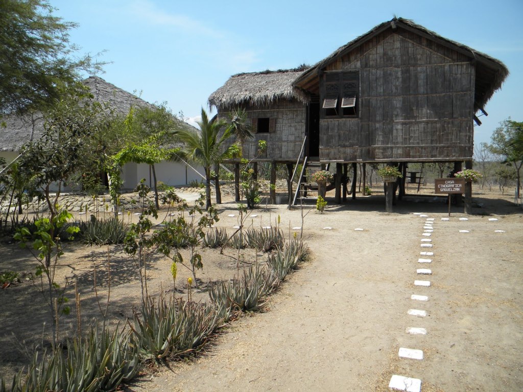 En algunos espacios los pobladores eligieron qué elementos mostrar de su propia cultura local, en el caso de la reproducción de vivienda esta fue diseñada y decorada por mujeres comuneras, lo mismo que la vitrina que trataba sobre identidad. Comuneras y comuneros y artistas urbanos trabajando juntos en algunos de los proyectos museográficos. Tejedoras, orfebres, ceramistas de la Península de Santa Elena estuvieron directamente involucradas en el montaje museográfico, los programas culturales y parte del desarrollo de un huerto de plantas medicinales. Entre ellas podemos destacar a Adela Borbor Rodríguez, Premio “Rosa Campuzano “al aporte femenino a las artes 2008″. Otra forma de participar es dejando comentarios, impresiones, sensaciones y valoraciones en el libro de visitas que está a disposición del público desde su inauguración (“El volver a nuestra historia es facilitar la comprensión del hombre de hoy”). La comunera Lilia Alfonso de Tugaduaja reorganiza los tejidos donados por su madre la maestra en telar Hortensia Ramírez Lindao (+). La bisnieta de Adam Lindao, Tania Quimí, guía cultural del Museo, estudiante de la UPSE.